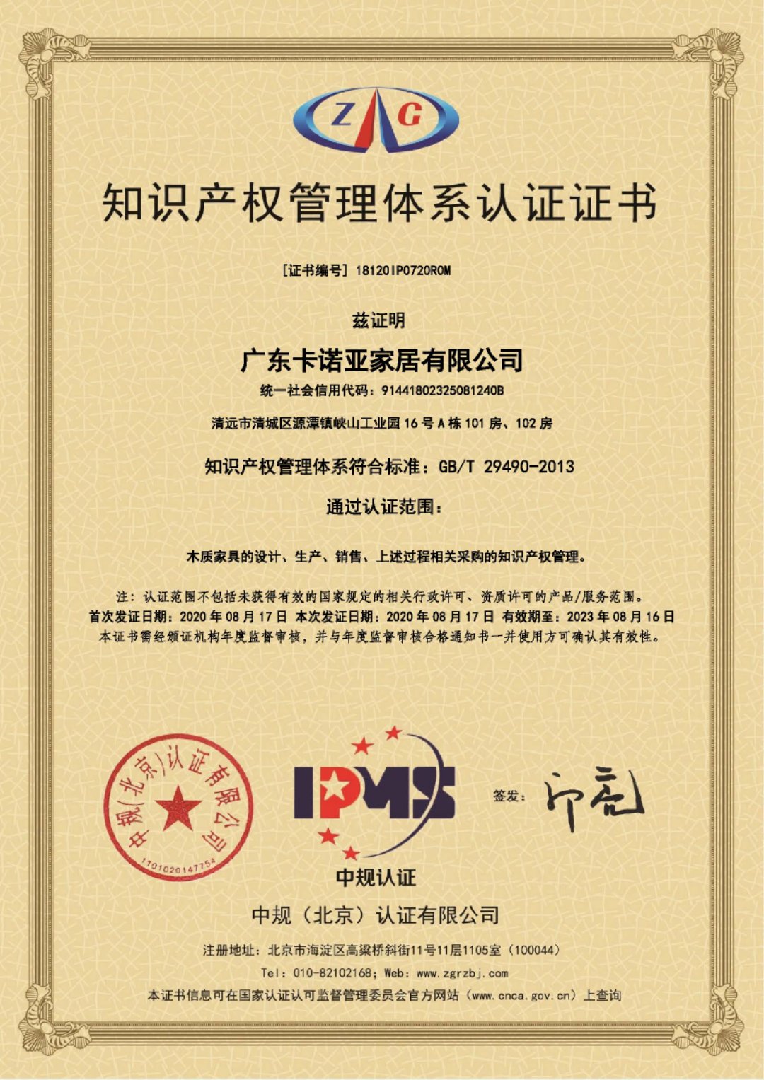 近日,經(jīng)層層嚴(yán)格的內(nèi)審、外審,作為高新技術(shù)企業(yè)的卡諾亞,順利通過中規(guī)(北京)認(rèn)證有限公司的審核,其知識(shí)產(chǎn)權(quán)管理體系完全符合國家關(guān)于企業(yè)知識(shí)產(chǎn)權(quán)管理規(guī)范的要求。獲此認(rèn)證,表明卡諾亞在推進(jìn)公司知識(shí)產(chǎn)權(quán)管理規(guī)范化方面獲得重要認(rèn)可,綜合競爭力進(jìn)一步提升,對(duì)企業(yè)健康可持續(xù)發(fā)展帶來深遠(yuǎn)影響,也為中國定制家居行業(yè)推進(jìn)知識(shí)產(chǎn)權(quán)管理體系建設(shè)樹立了標(biāo)桿。