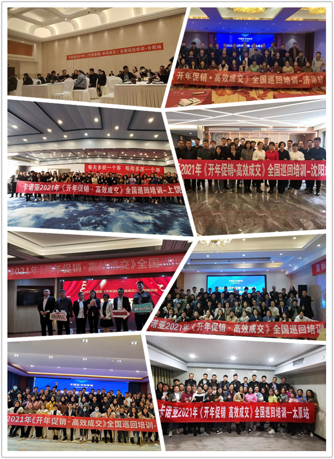 據(jù)悉,卡諾亞定制家居2021年第一季度區(qū)域會議暨開年促銷高效成交全國巡回培訓(xùn),分別在沈陽、西安、天津、太原、重慶、廣州、長沙、武漢、鄭州、濟(jì)南、上饒、合肥等近20個(gè)城市圓滿舉行。