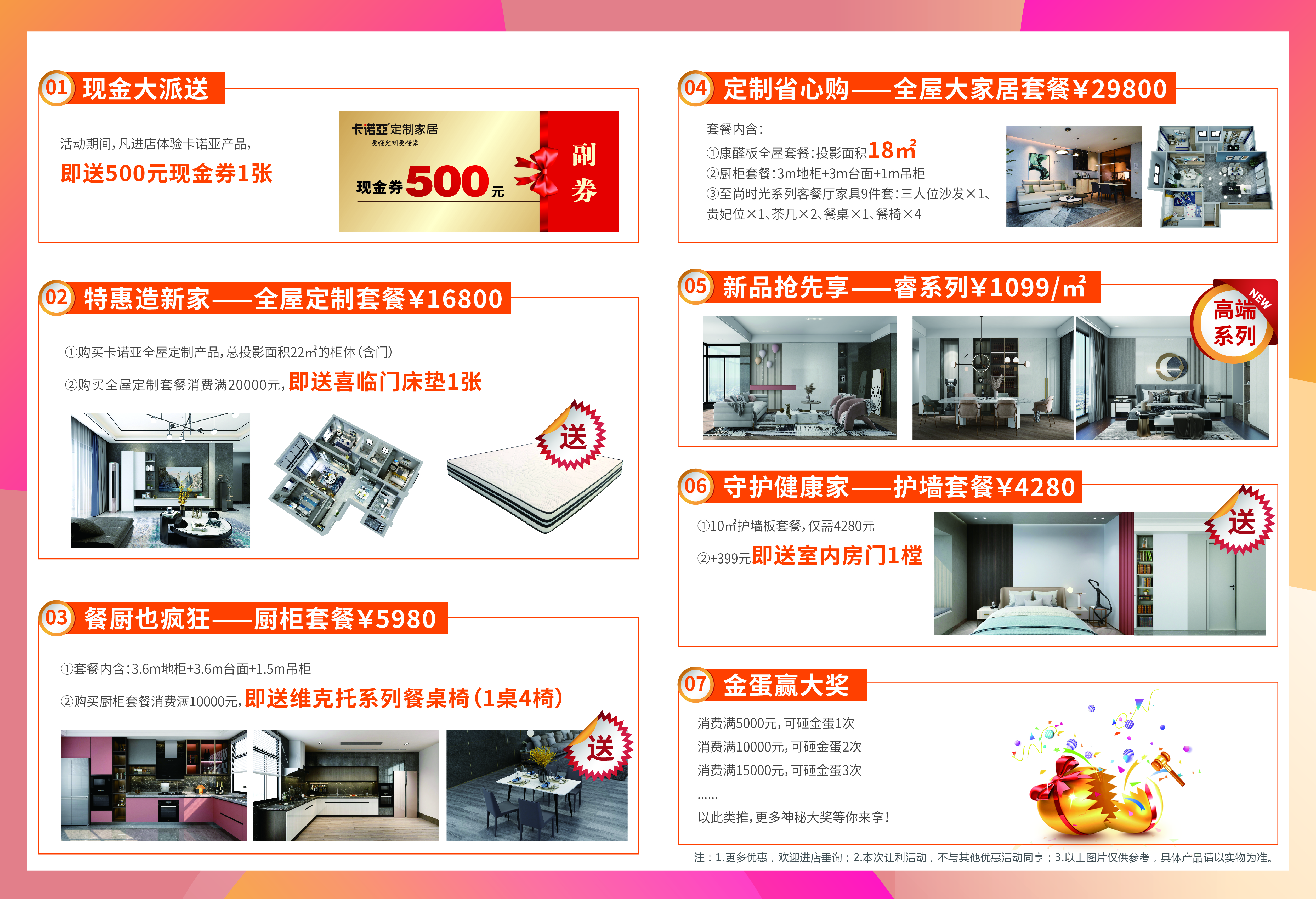 對卡諾亞定制家居來說,促銷不僅是一場讓利活動,更是與消費者建立深度聯(lián)系、樹立品牌口碑的重要契機,因此,在活動期間,卡諾亞定制家居面向全國消費者發(fā)送500元現(xiàn)金券,消費滿10000元即可直接參與滿減,這個五一,卡諾亞定制家居瘋狂讓利,陪您歡樂過節(jié)。
