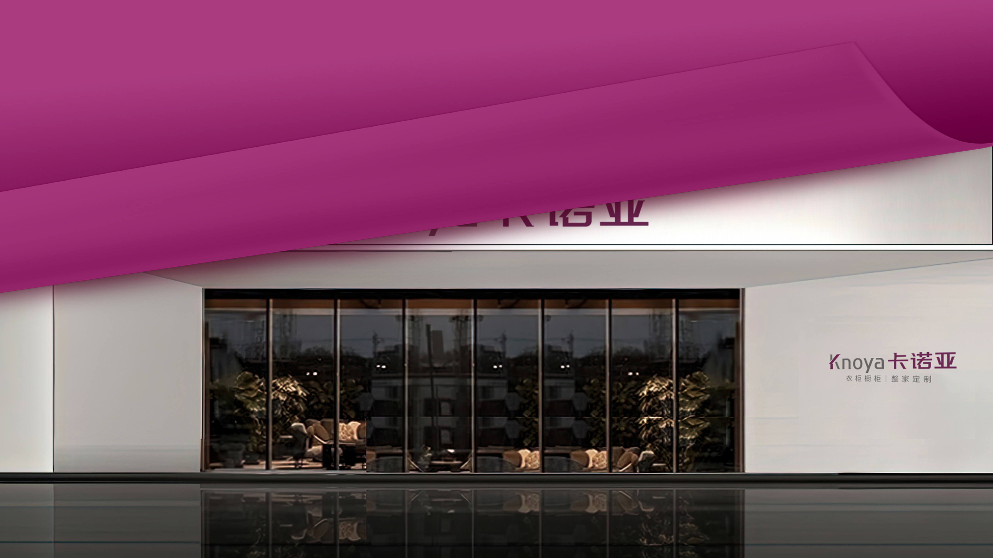 其中,圖標(biāo)以“K+Home”作為創(chuàng)意出發(fā)點,以KNOYA首寫字母K,結(jié)合“家”的房屋造型進行創(chuàng)意設(shè)計,表達了卡諾亞帶給消費者“高顏質(zhì)的家,就要卡諾亞”的品牌自信。標(biāo)志在色彩應(yīng)用上耳目一新,VI標(biāo)準(zhǔn)色采用品牌紫,具有獨特的視覺特征,與其他品牌做到了很好的區(qū)隔,且傳達了卡諾亞整家定制的專業(yè)和品質(zhì)。