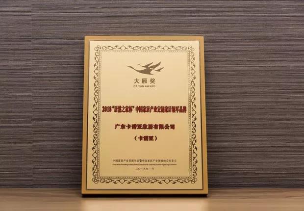 卡諾亞憑借雄厚的企業(yè)實(shí)力、強(qiáng)大的品牌影響力,從眾多家居品牌中脫穎而出,榮獲“大雁獎(jiǎng)·2018中國(guó)家居產(chǎn)業(yè)定制家居領(lǐng)軍品牌”,這既是家居業(yè)最權(quán)威機(jī)構(gòu)對(duì)卡諾亞的認(rèn)可,更是蓬勃發(fā)展的定制家居行業(yè)及廣大消費(fèi)者對(duì)卡諾亞寄予的厚望。